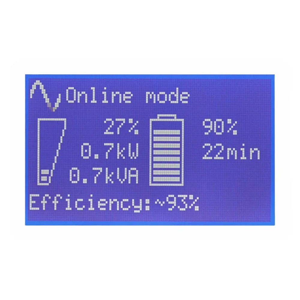 - The graphical LCD display provides clear information on the UPS´s status and measurements on a single screen.