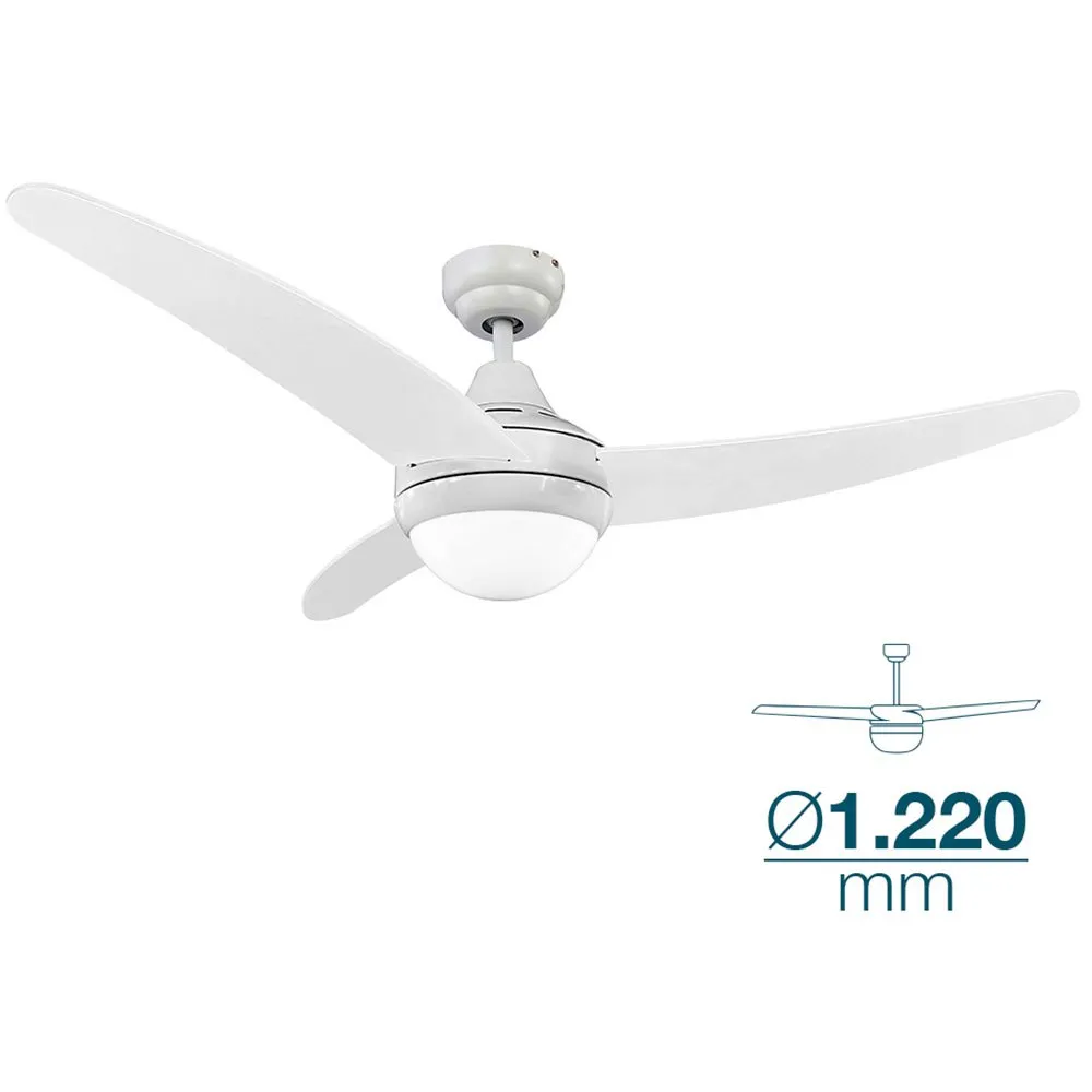 White Egeo Design Ceiling Fan 60w Ø Blades 122 Cm 3 Speeds With Remote Control Air Flow 6961m3/H Ac-220/240v.