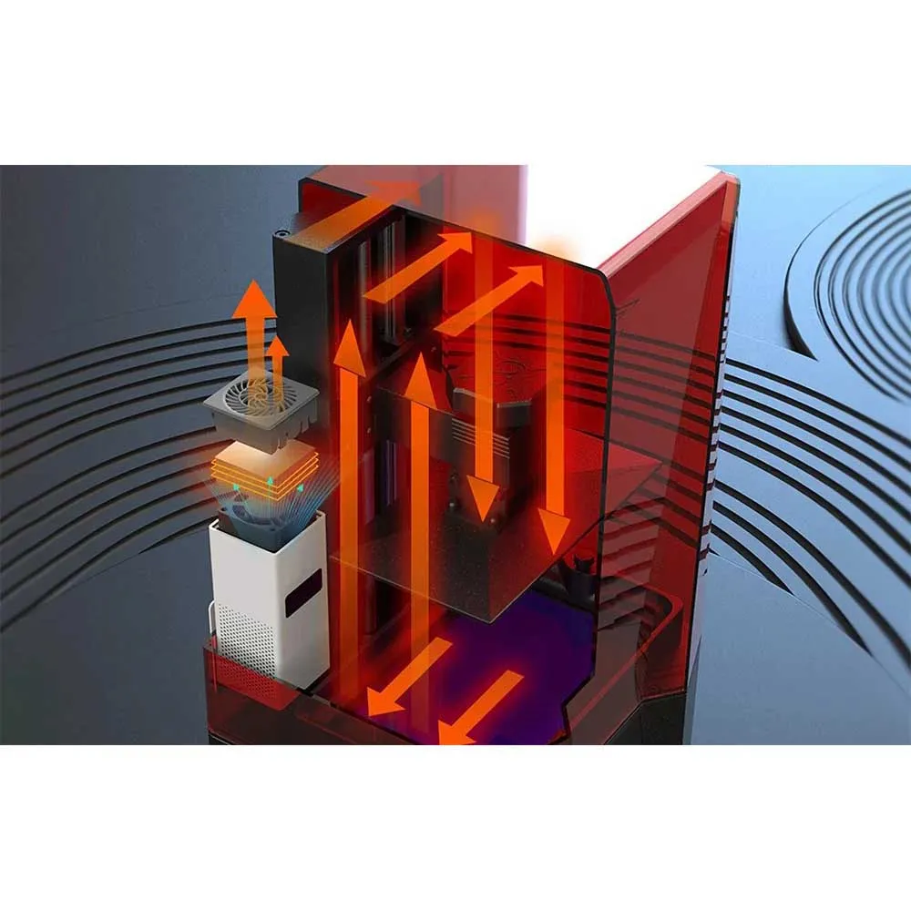 A high-quality fan actively circulates the warm air throughout the print chamber, preventing hot spots and ensuring the entire resin vat is heated evenly for uniform performance.