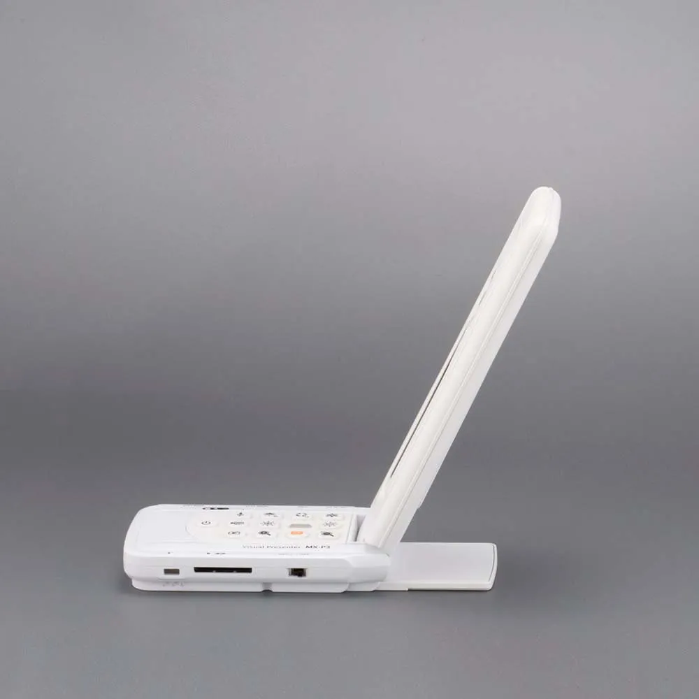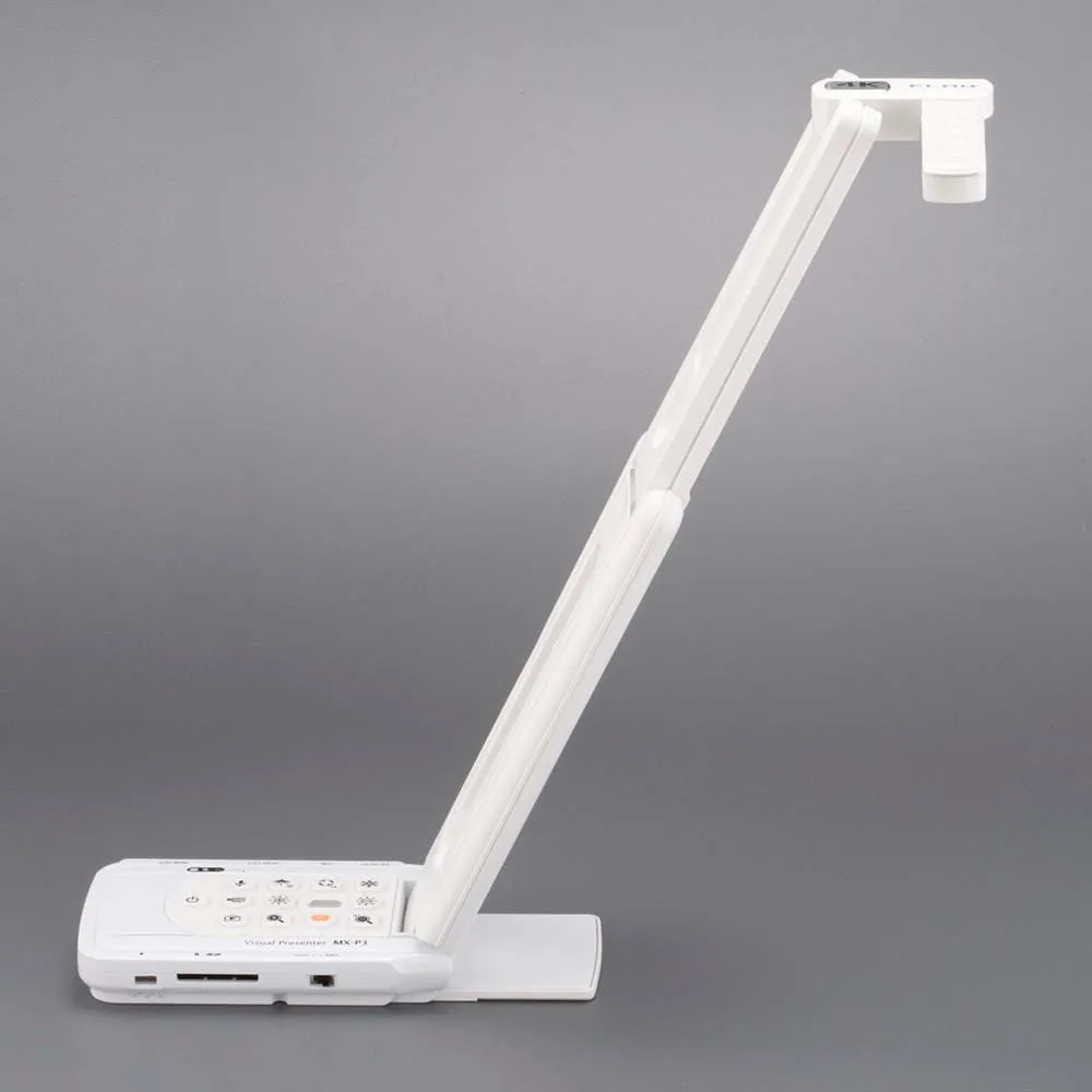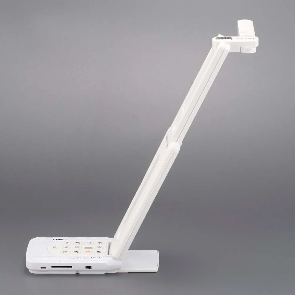 The ELMO MX-P3 4K 60FPS Document Camera in white is a high-performing visual tool perfect for use in TV, audio, and projector setups.