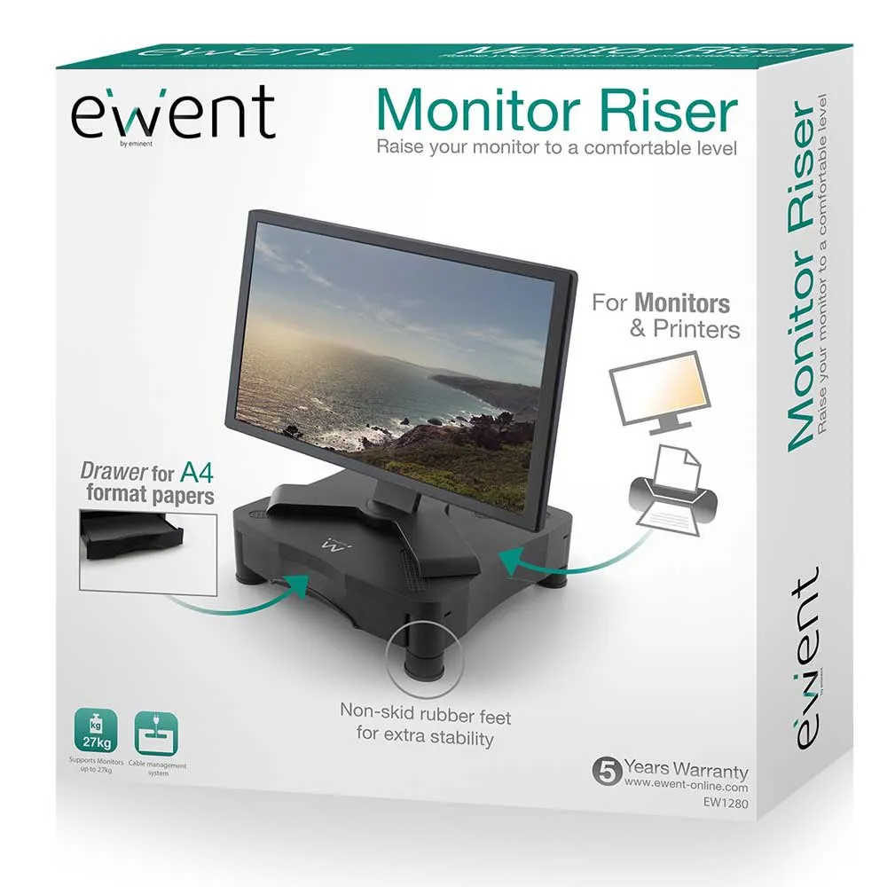 The EW1280 Monitor Riser raises your monitor to a comfortable height for you.