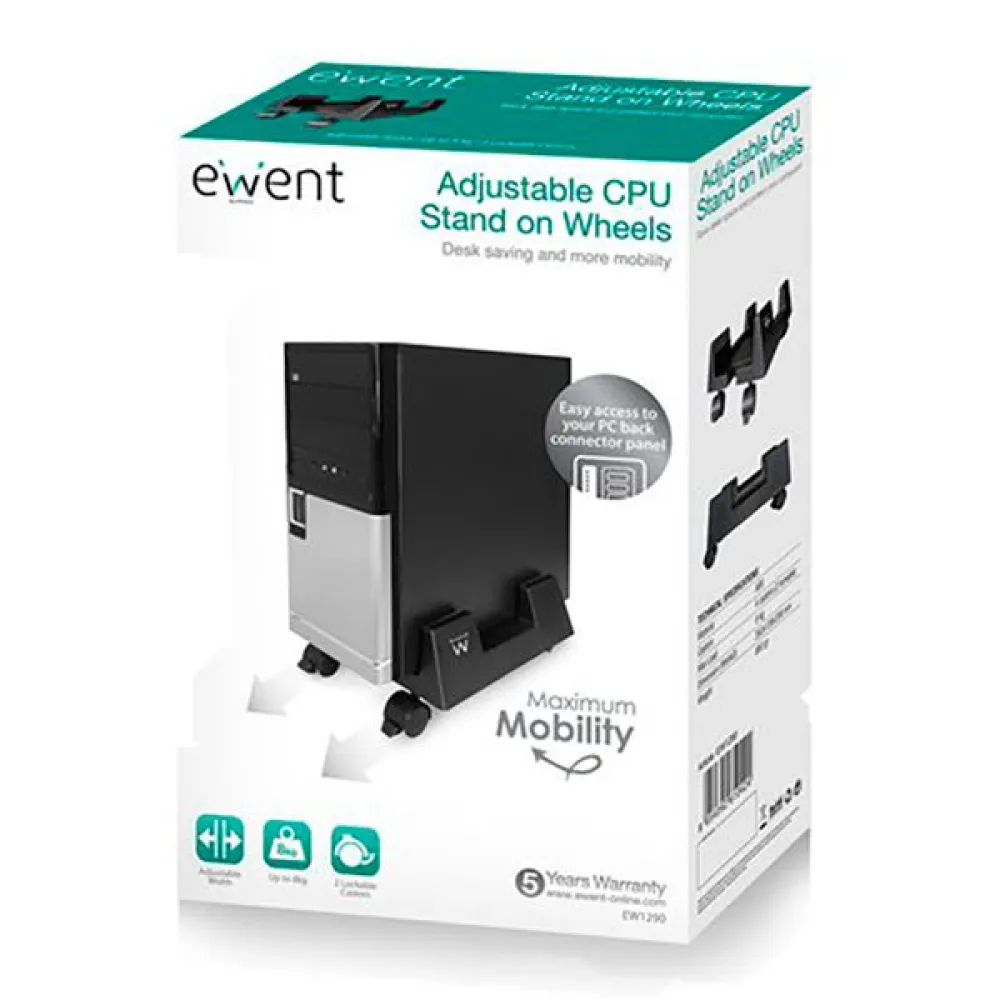 The Ewent EW1290 rolling stand works with many types of computer cases thanks to the adjustable base.