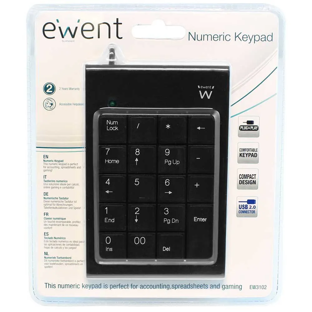 The Ewent keypad is the perfect complement to your notebook. Connect it to a USB port to get started. Thanks to its compact design, you can easily bring the keypad everywhere in your notebook bag.