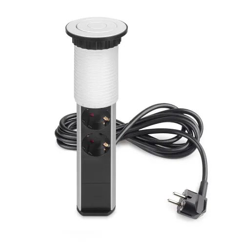 The multi-plug connector or liftable plug tower is designed to add functionality with its complete integration into the kitchen, office and home furniture.