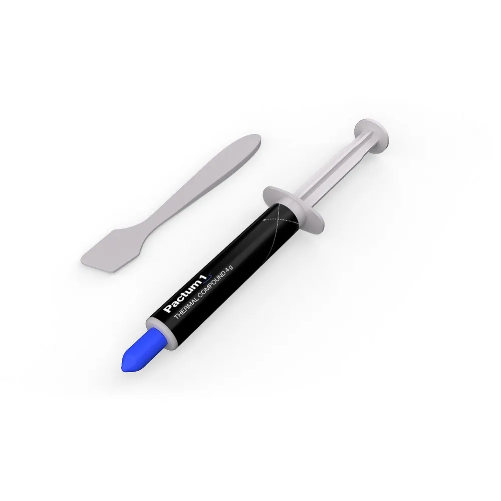 Pactum 1 4 g thermal paste was made with effective heat conduction in mind. 4 grams of this product, enclosed in a convenient applicator, is more than enough to guarantee multiple precise and even applications. Just spread a thin layer on your CPU and you’re good to go.