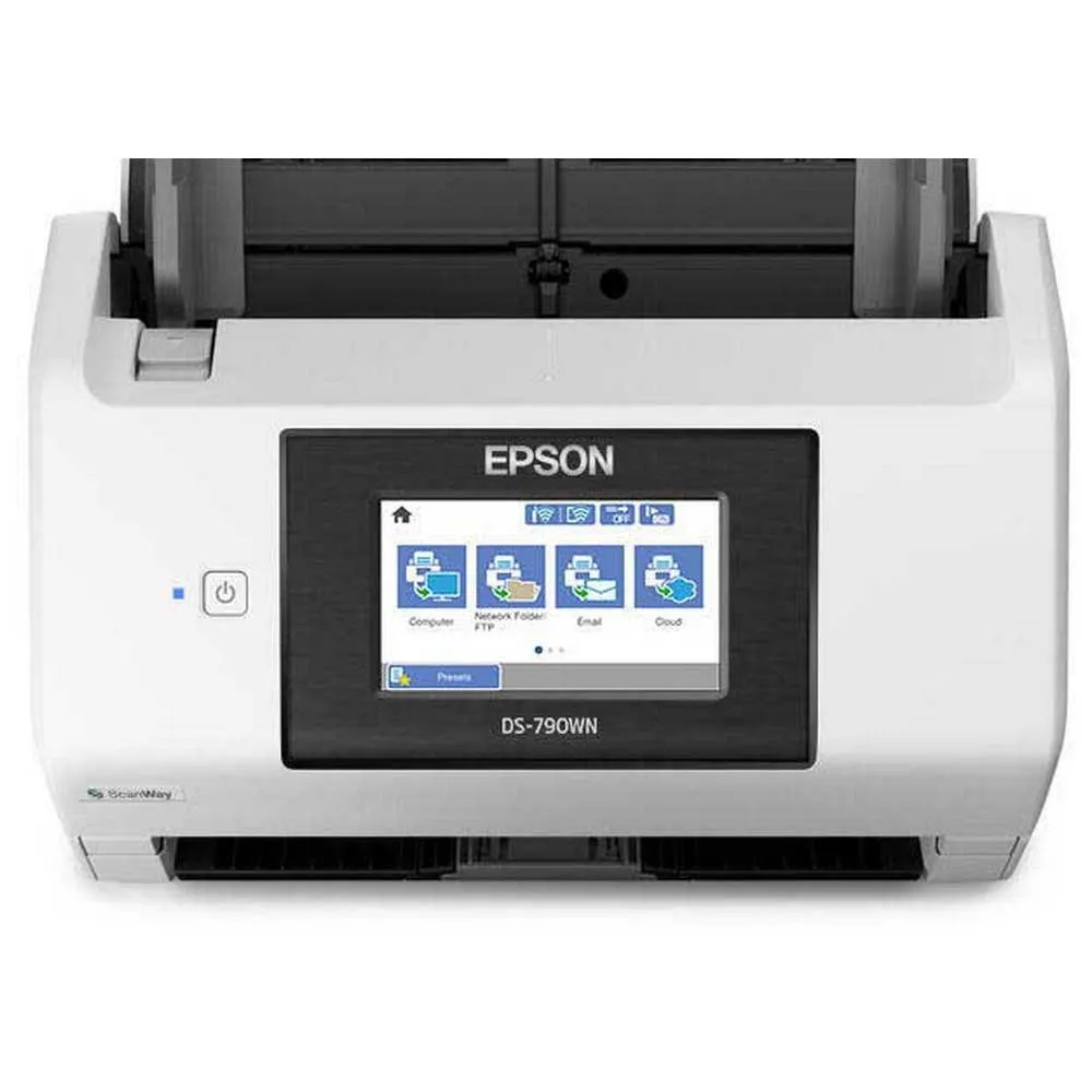 Boost your office productivity with the Epson WorkForce DS-790WN scanner. This powerful sheetfed scanner offers high-speed, two-sided scanning at up to 45 ppm / 90 ipm, while its 100-sheet ADF handles large jobs with ease. Enjoy PC-free scanning with ScanWay, sending documents directly to the network, cloud, email, or USB. The large 10.9 cm color touchscreen makes operation simple, while advanced authentication keeps your data secure. With versatile connectivity including Wi-Fi, Ethernet, and USB 3.0, it´s the perfect solution for any modern workspace. EU PLUG