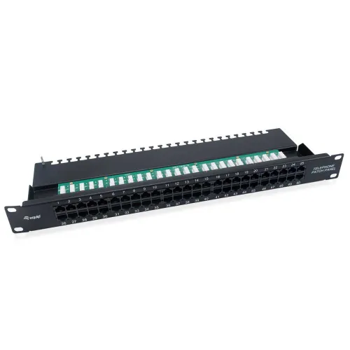 The equip® ISDN Patch Panel is a 19´´ 1U telephone distribution unit integrating cable management system for better routing and strain relief requirements, suitable for both LSA and 110 standards.