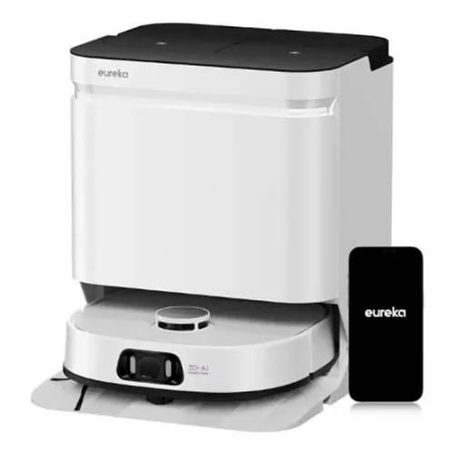 Self-Cleaning Base Station and Hot Water Mop Wash:Hands-free maintenance with the Eureka J15 robot vacuum cleaner with automatic 75°C hot mop washing and self-cleaning base station that empties the trash can and dries the mop.