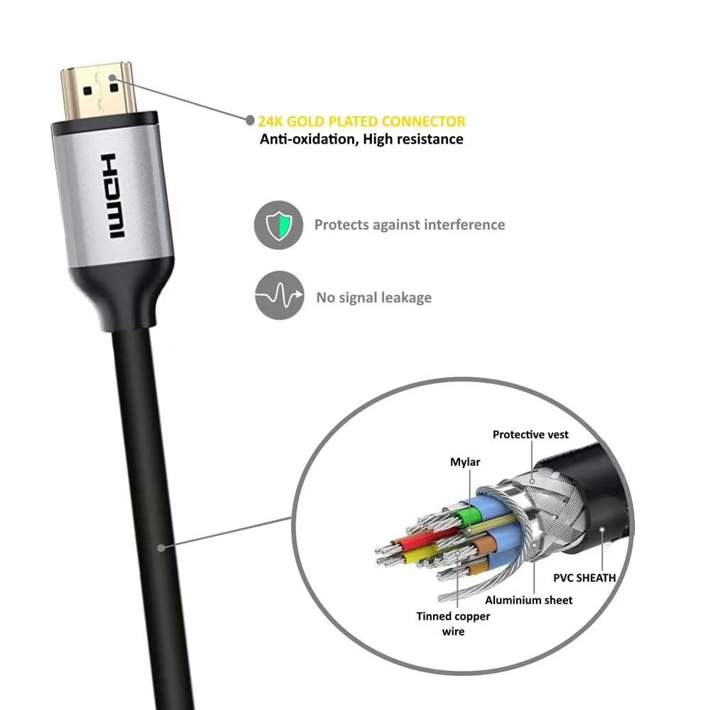 Gold-plated contacts and triple shielding of the cable ensure maximum conductivity and trouble-free transmission.