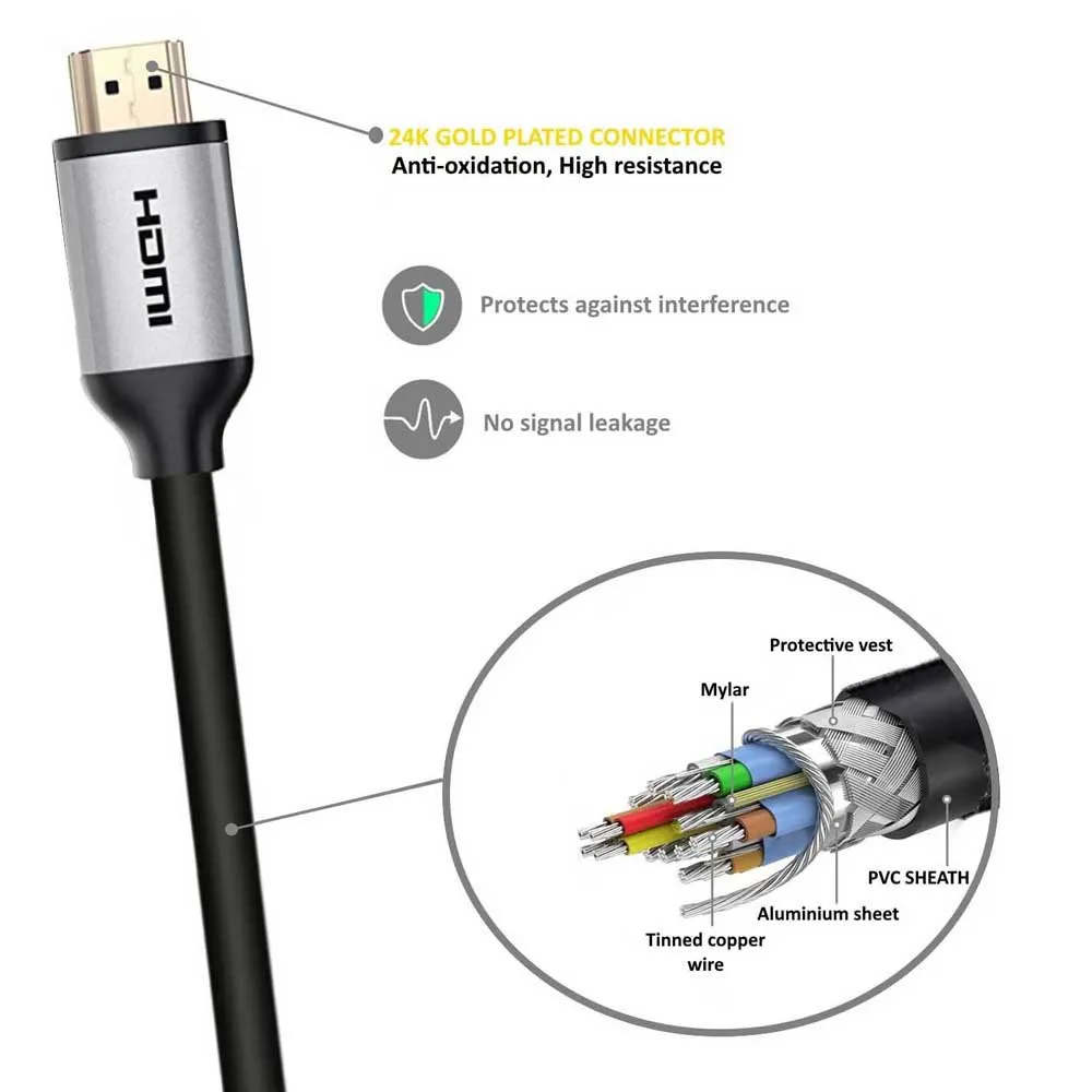 Gold-plated contacts and triple shielding of the cable ensure maximum conductivity and trouble-free transmission.