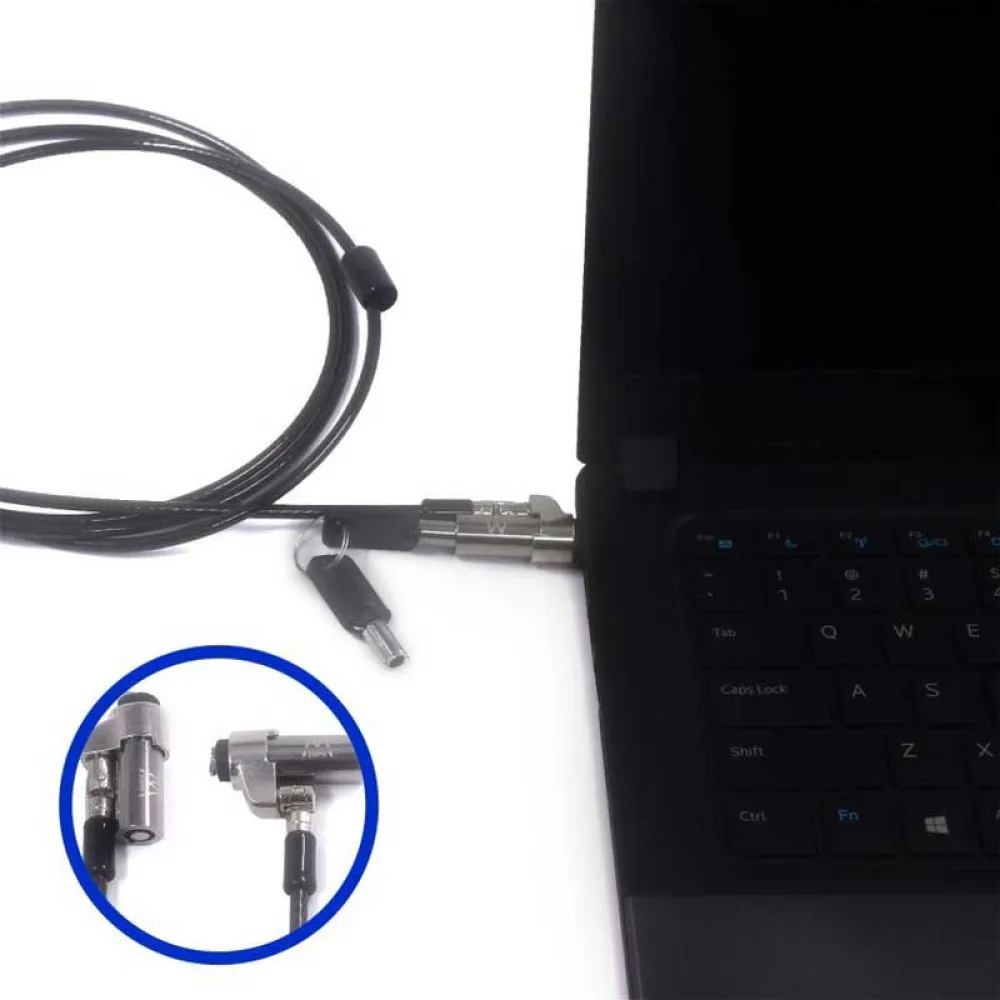 - Easy and universal use: The security cable can be installed and manipulated without the need for technical skills or advanced knowledge. Its design is fully compatible with all electronic or non-electronic devices that have this type of NANO security slot. Ideal for use with different brands and models of laptops, monitors, televisions, projectors, etc. The cable provides a practical and flexible solution for any type of user.
