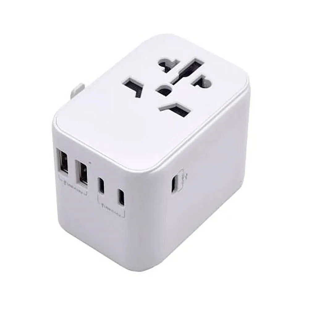 The adapter is equipped with 4 different wall plugs (retractable), compatible with US, UK, Europe, Asia, Australia and New Zealand.