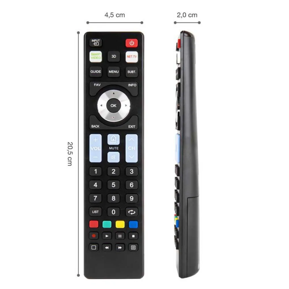 The remote control works without programming and includes all the functions of the original remote control for your LG, Samsung, Sony, Panasonic or Philips TV.