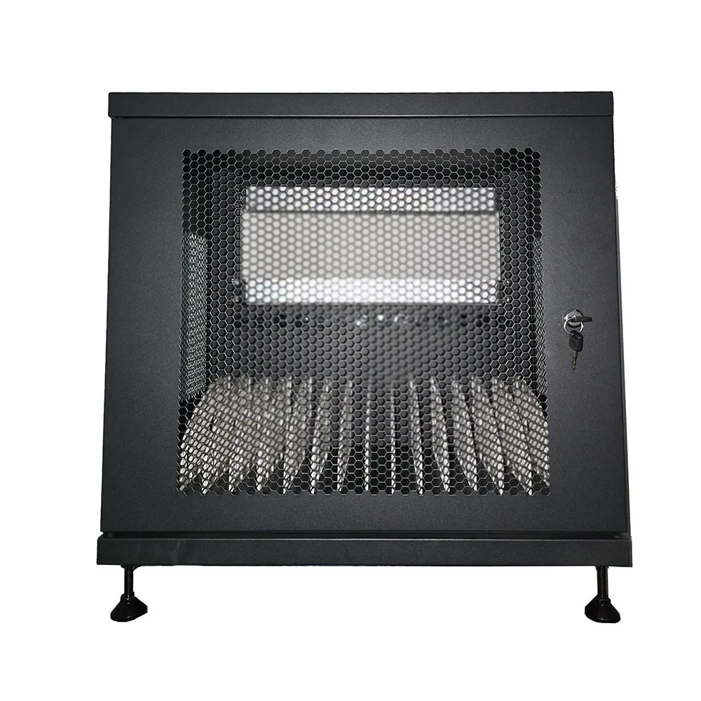 The fixed side panels have a central perforated section to facilitate heat exchange and the cable grommets are equipped with rubber grommets.