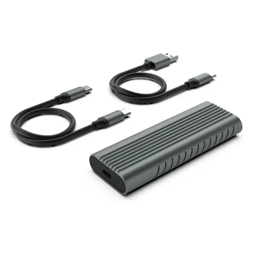 The aluminum SSD enclosure comes with a USB-C to USB-C cable and a USB-C to USB-A cable.