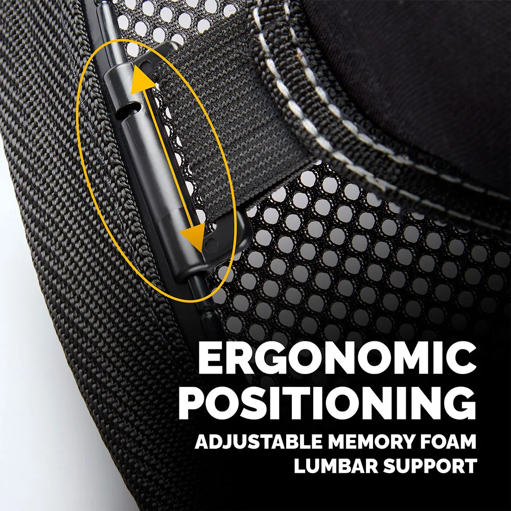 Experience superior comfort thanks to the breathable mesh fabric. This design facilitates continuous air circulation, preventing heat and moisture build-up to keep your back cool, dry, and comfortable, even during the most demanding work sessions or in warmer environments.