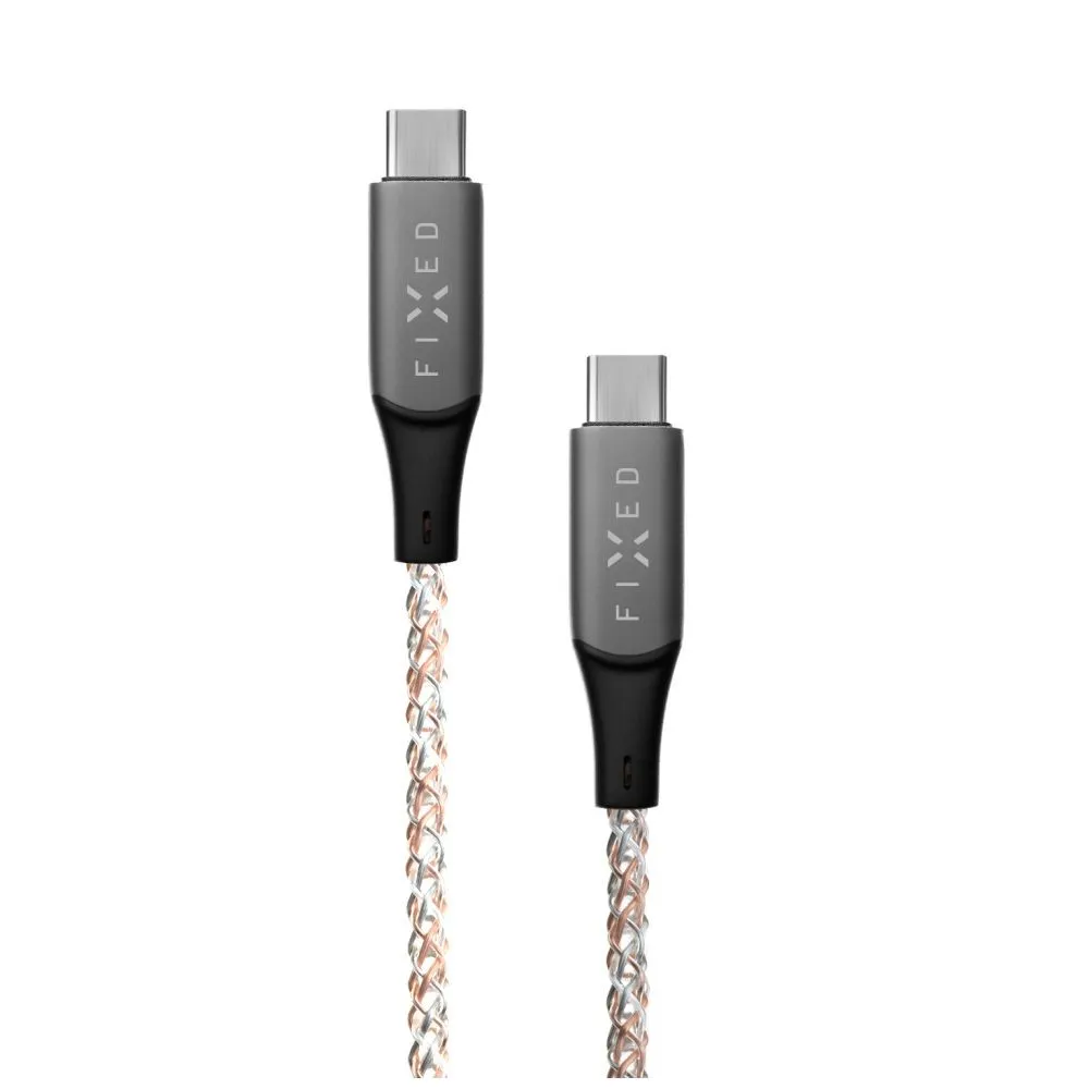 The original FIXED glowing cable with double-sided USB-C connectors that literally lights up when charging your phone, tablet or other accessories. Its copper braid is complemented by optical fibers along the entire length of the cable, and when you connect the cable to the adapter, they begin to glow with changing colors in the RGB interface. Especially in the dark, this creates a beautiful rainbow effect during charging. The USB-C connectors in matt aluminium can charge with up to 60W of power. In the package you will also find practical accessories, a drawstring strap for easy transport of the cable and an adhesive organizer to fix the cable in the chosen place.
