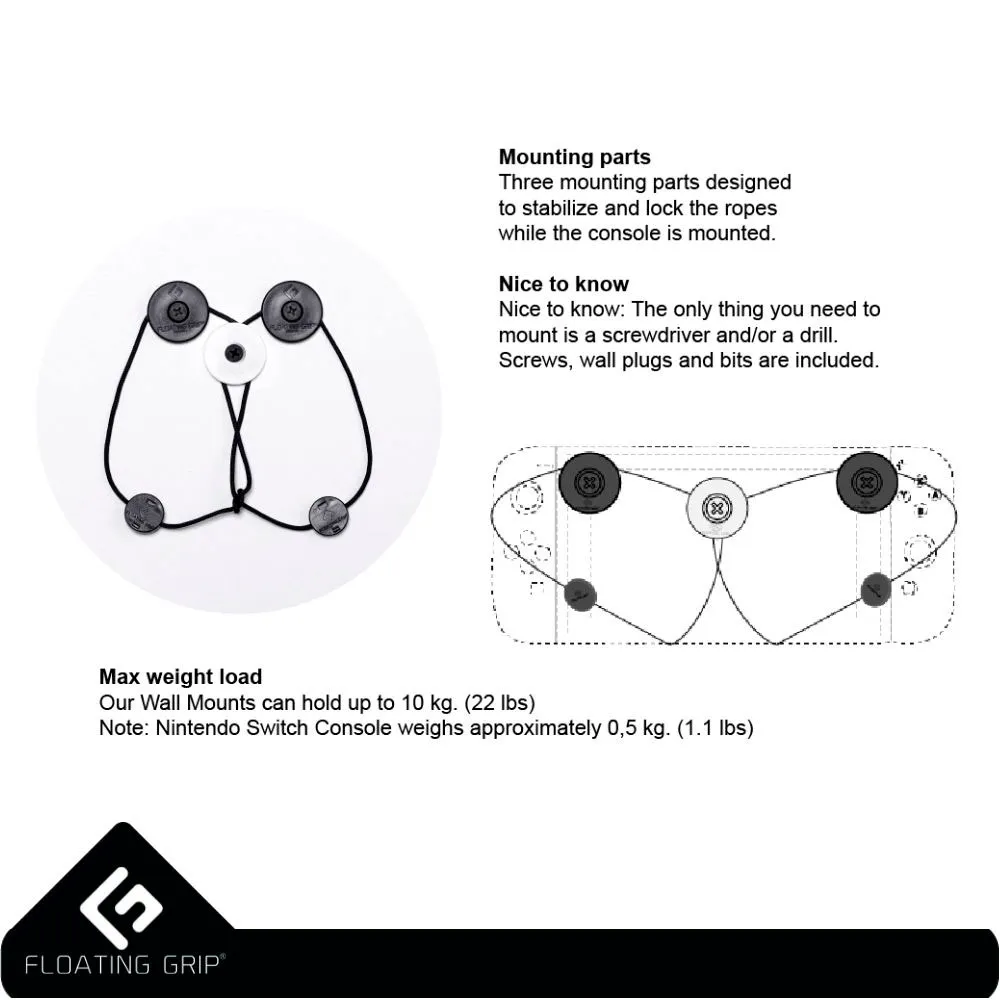 * Durable Construction: Made from high-quality materials, the FLOATING GRIP Wall Mount is built to last and withstand the weight of your Nintendo Switch.