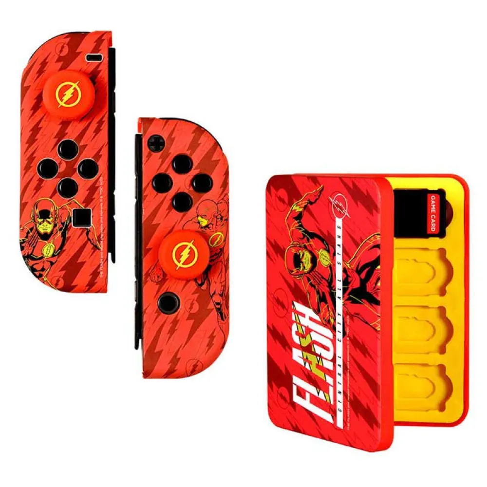 Accelerate towards victory with the incredible The Flash Combo Pack for Nintendo Switch! This set of hard shell and grips, with the iconic Flash emblem, will provide you a good grip while you enjoy your games.