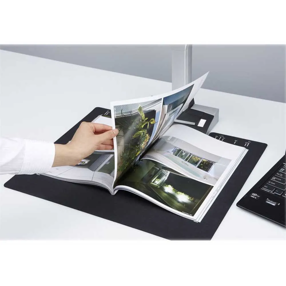 - Any documents larger than A4 such as maps, historical documents and blueprints can be simply positioned on the black pad and scanned directly without any extra effort.