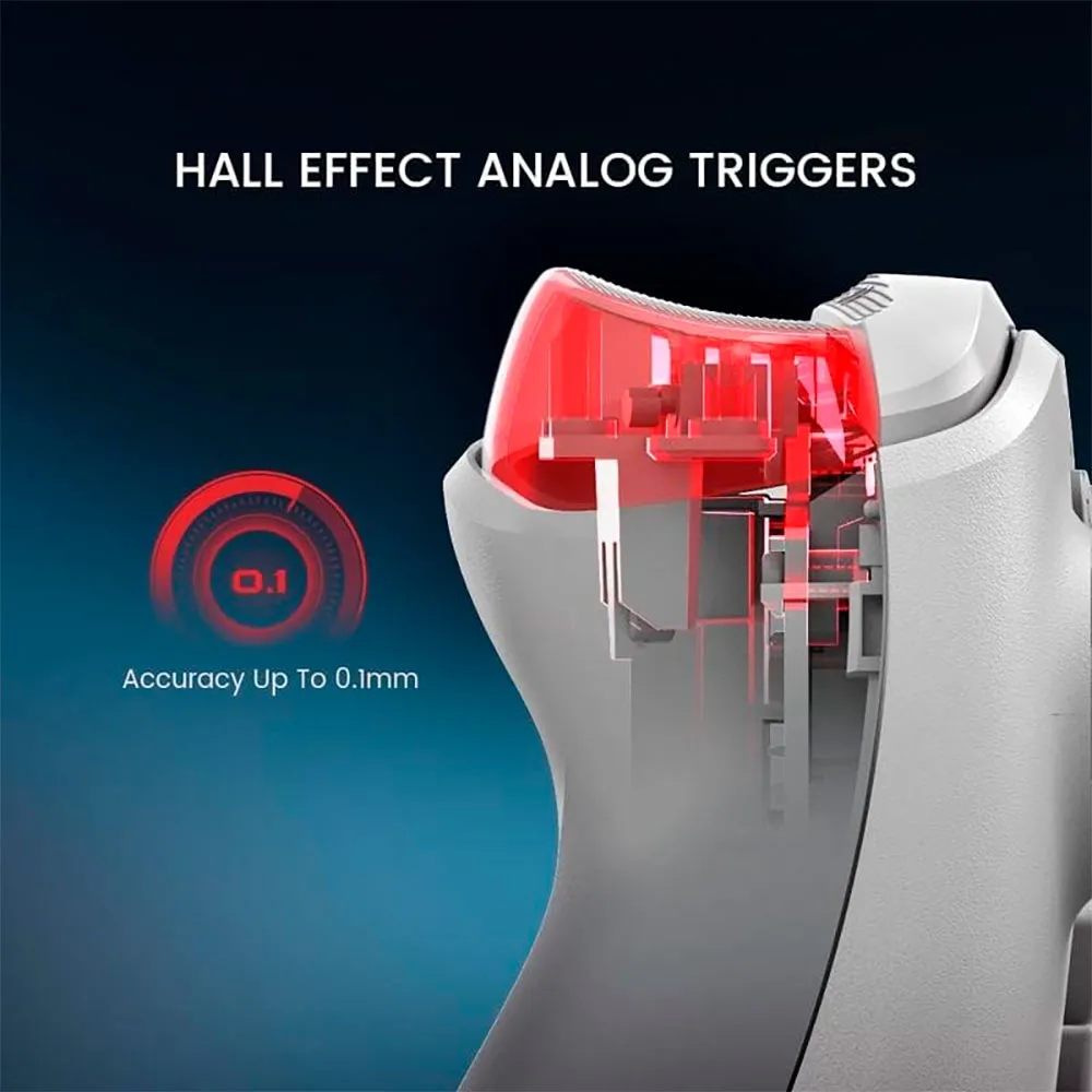 - The controller is equipped with GameSir™ advanced Hall-effect sensor sticks, which provide durability of up to 5 million cycles. These sticks offer precise and responsive feedback, and are equipped with wear-resistant rings to prevent damage to the hardware. Hall-effect analog triggers guarantee consistent distance and depth, which is crucial in racing games where precision acceleration and braking is of paramount importance. In addition, for FPS and action game players, the GameSir G7 HE offers an ultra-sensitive trigger mode (Hair Trigger Mode), which can be activated by holding down the M + LT/RT buttons.