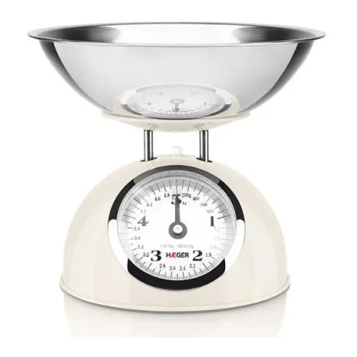 The HAEGER Pastel Cream Mechanical Kitchen Scale is the perfect combination of efficiency and style for your kitchen. With a capacity to weigh up to 5kg with an accuracy of 20g, this utensil is indispensable for those who value precision in their recipes. Its pastel cream design not only adds a dash of colour and cheer to the room, but also evokes a retro charm. This scale does not require batteries or electricity, making it practical and environmentally friendly. The display is large and easy to read, ensuring you can check measurements quickly and optimise your time in the kitchen.