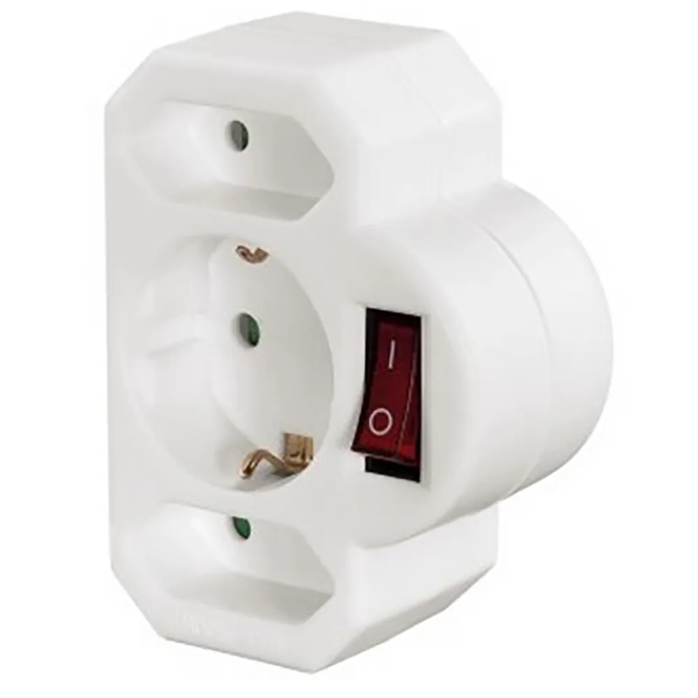 - Compact adapter plug on 1 socket with earth contact and 2 Euro sockets.