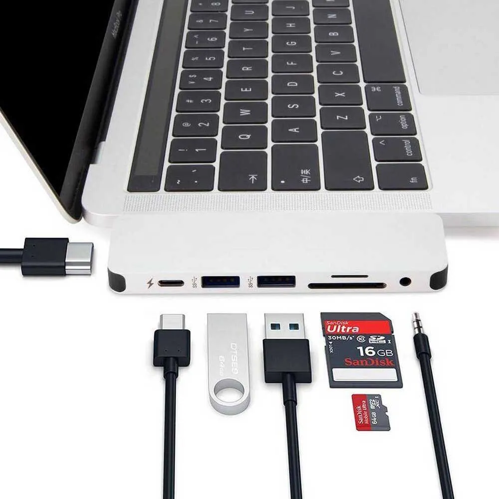 - Turns a single USB-C port into 7 ports (4K/30Hz HDMI, USB-C Power Delivery, 2 x USB-A, Micro SD, SD, 3.5mm Audio Jack)