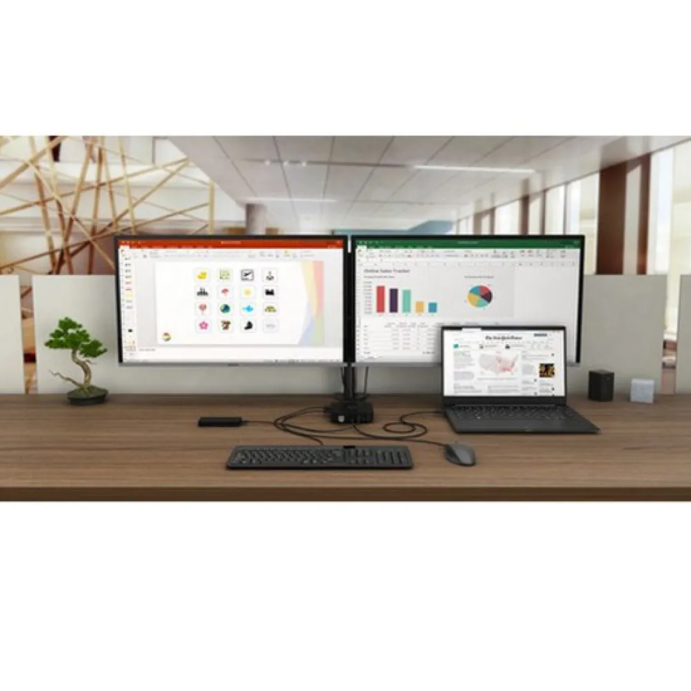 USB-C office docking station with support for up to 2 external monitors with 4K resolution.