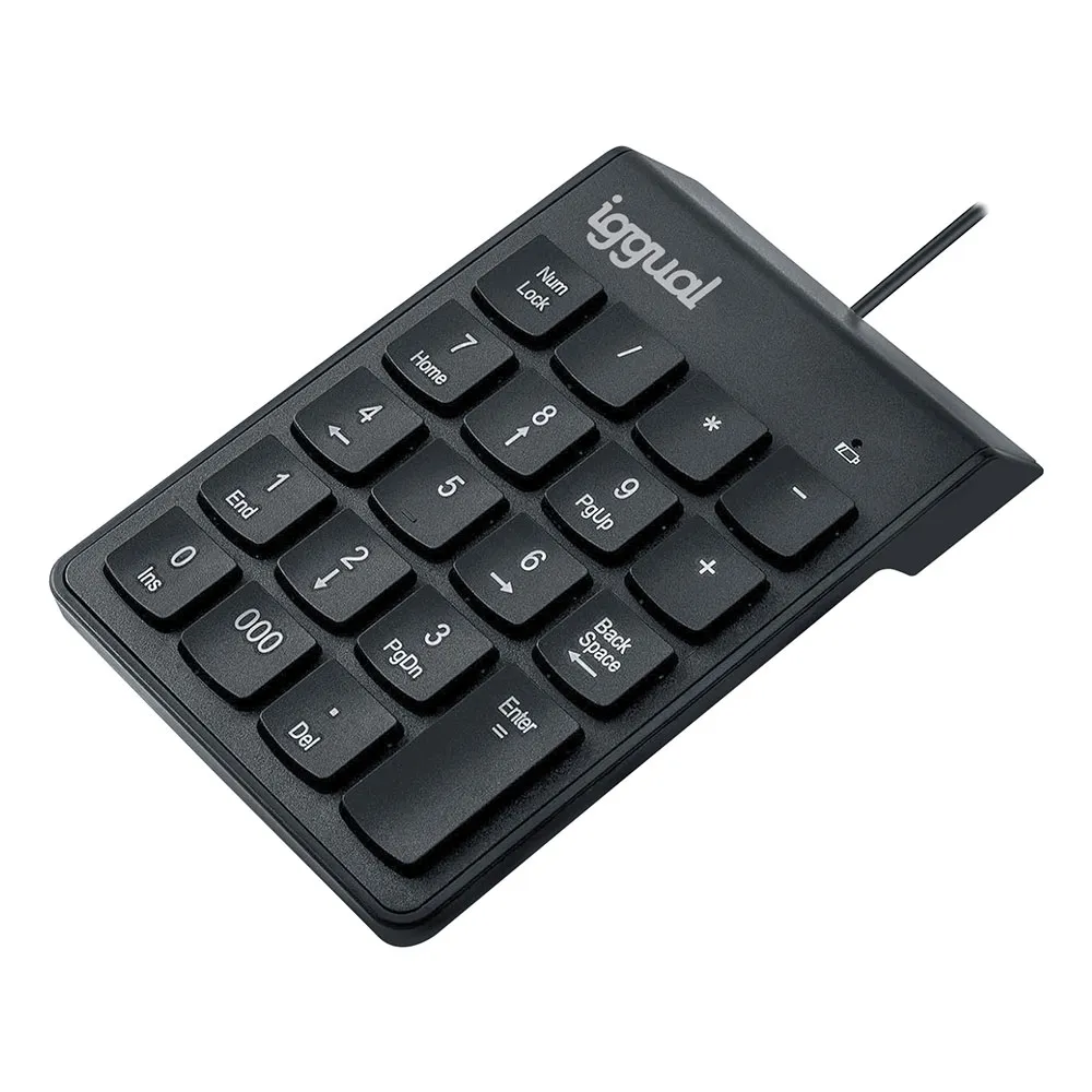 The primary benefit of the IGGUAL CK-NUM-19T is its ability to significantly boost your workflow. Its familiar, calculator-style layout allows for rapid, one-handed entry of numbers, calculations, and functions, reducing task completion time and minimizing typos. Its slim, lightweight, and compact design makes it an incredibly portable solution, easily fitting into any laptop bag without adding bulk. Whether you´re working from the office, at home, or on the go, this numeric keyboard ensures you always have the tools you need to work efficiently. The simple plug-and-play functionality means you can get started in seconds—no drivers, no software, and no complicated setup. Just connect the USB cable to your device, and you´re ready to go.