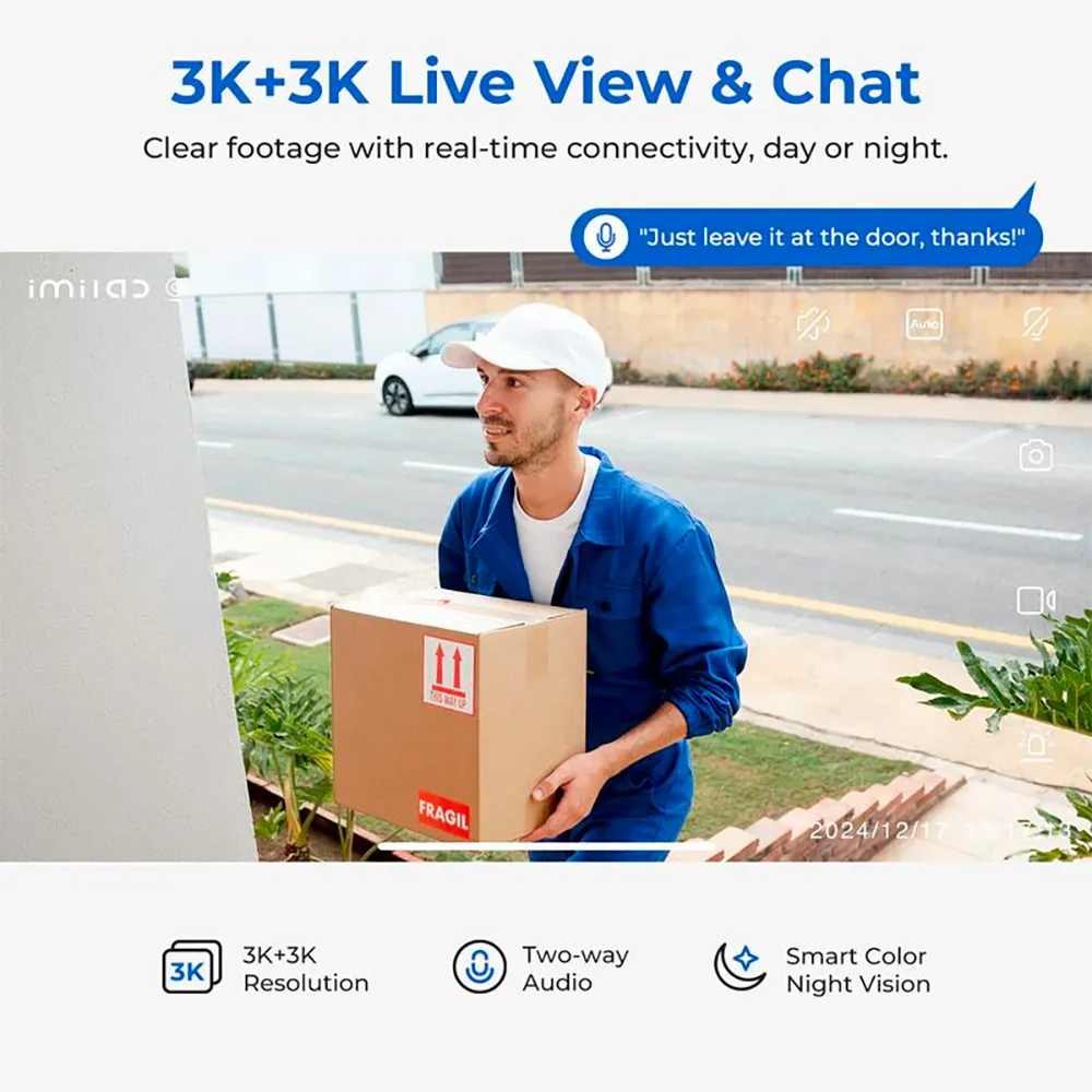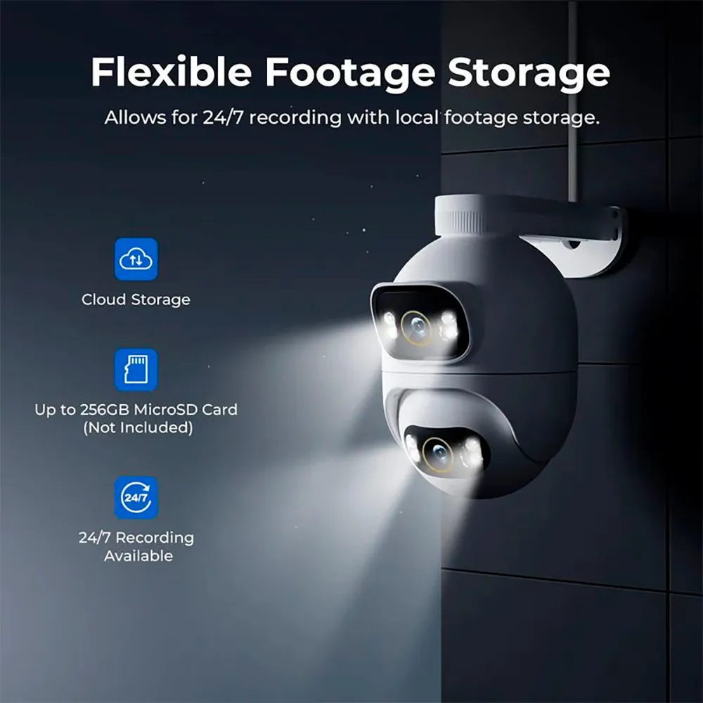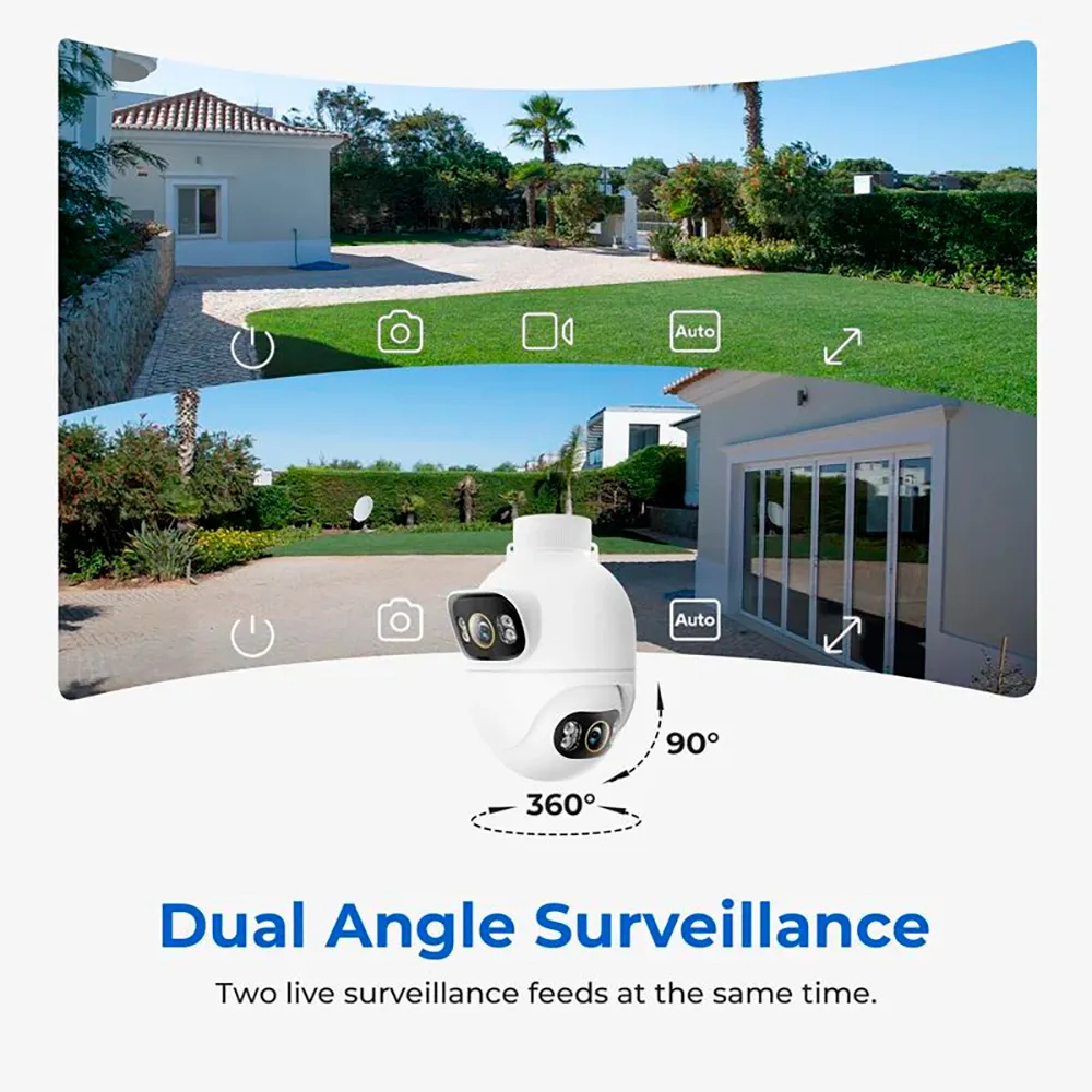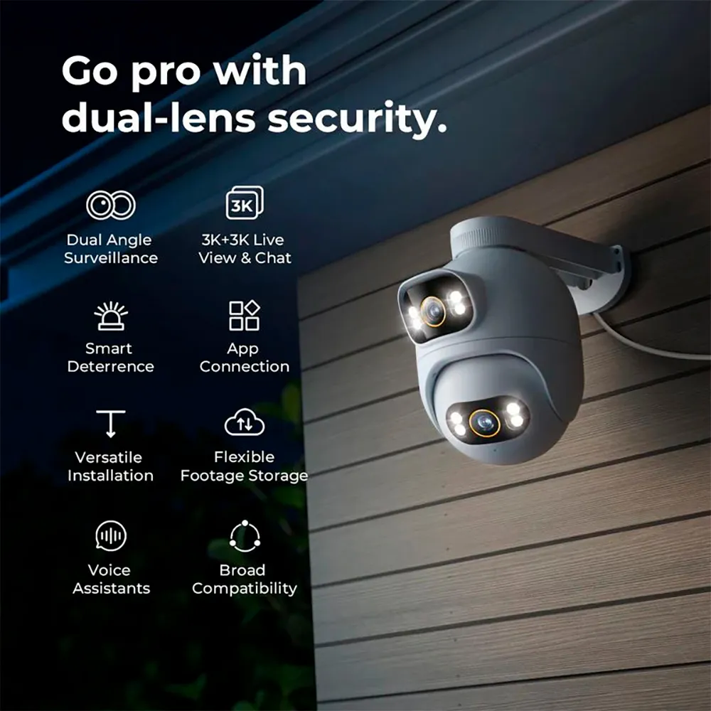 It has a dual lens with 3 MP resolution that allows you to cover two different viewing angles at the same time at 3K resolution.
