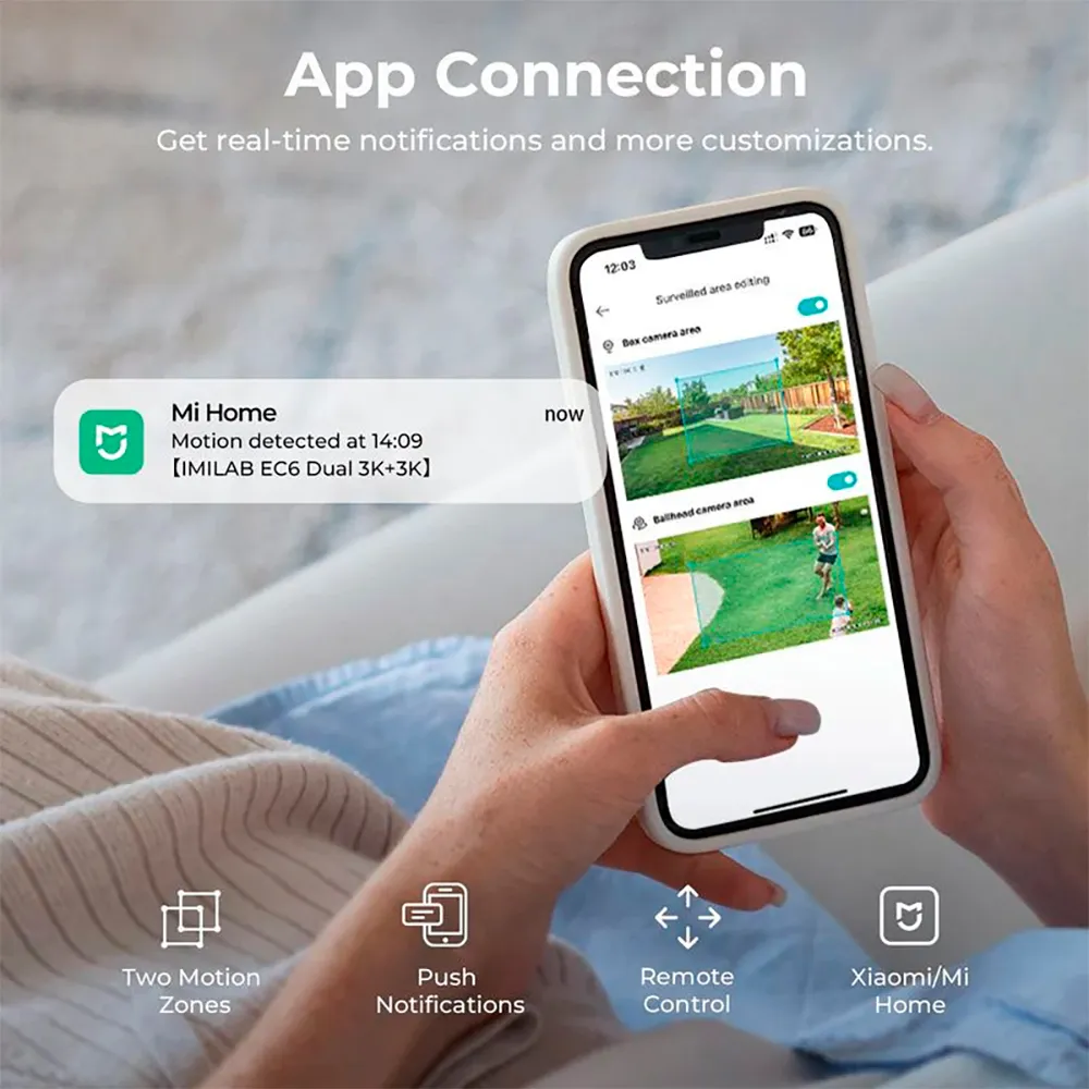 You can configure the surveillance, defining surveillance areas and connecting it to different Xiaomi devices and voice assistants such as Alexa and Google Assistant.