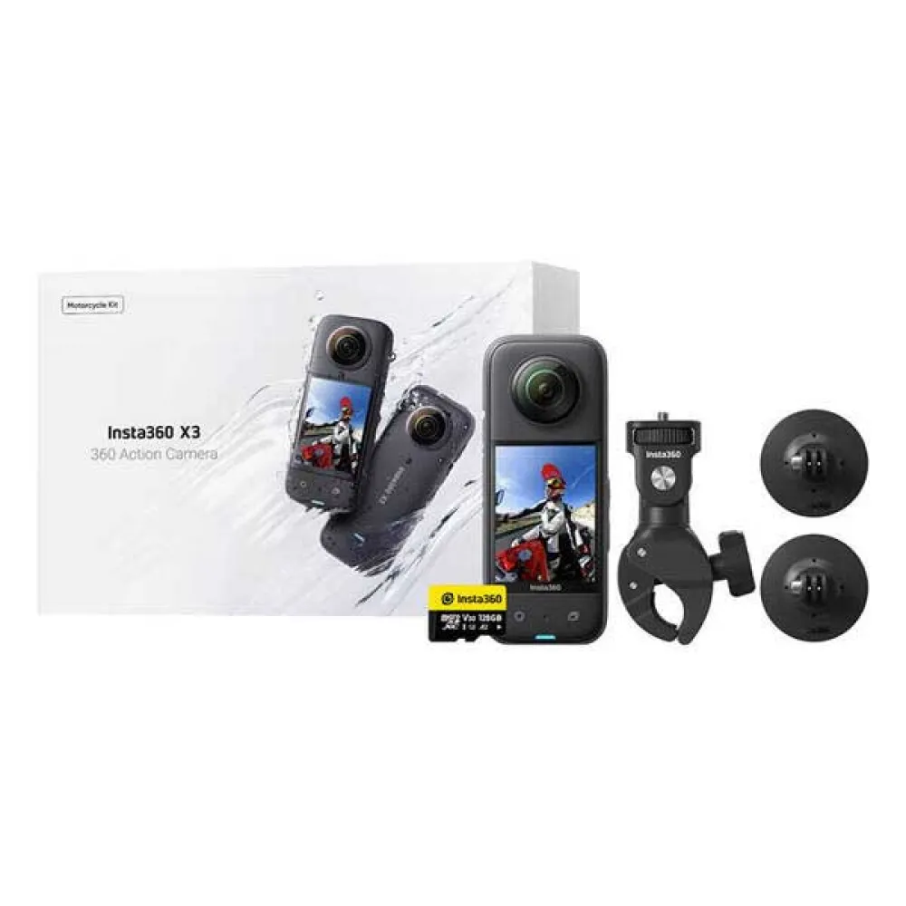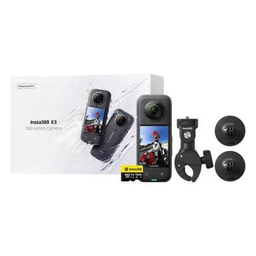 The INSTA360 X3 Motor Combo action camera in Black is a versatile and compact camera perfect for capturing all your adventures. With its 360-degree capabilities, you'll be able to capture every angle of the action in stunning detail.