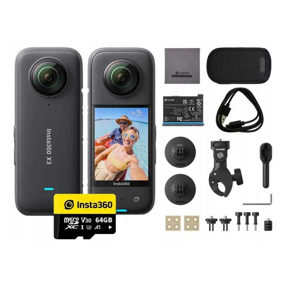 Whether you're hiking, biking, skiing, or just exploring the world around you, the INSTA360 X3 Motor Combo action camera is the perfect companion to document your adventures. With its durable design and high-quality image and video capabilities, you'll never miss a moment again.