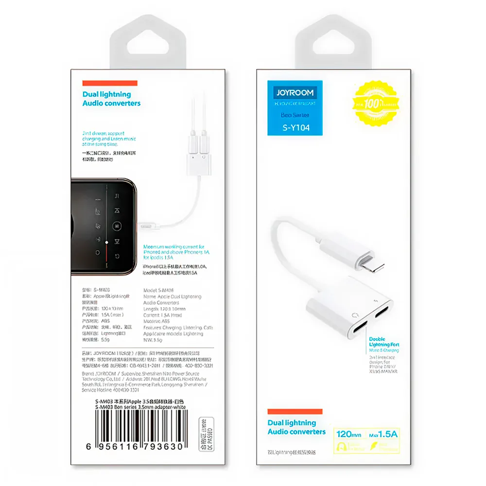 Dual function adapter: Charging and Audio. Lightning to dual Lightning cable that allows you to listen and charge simultaneously. Connect your audio and charging cable at the same time to your device. 2-in-1 adapter designed to support iPhone 7/8/9/X/XS MAX/XR/11/12/13.