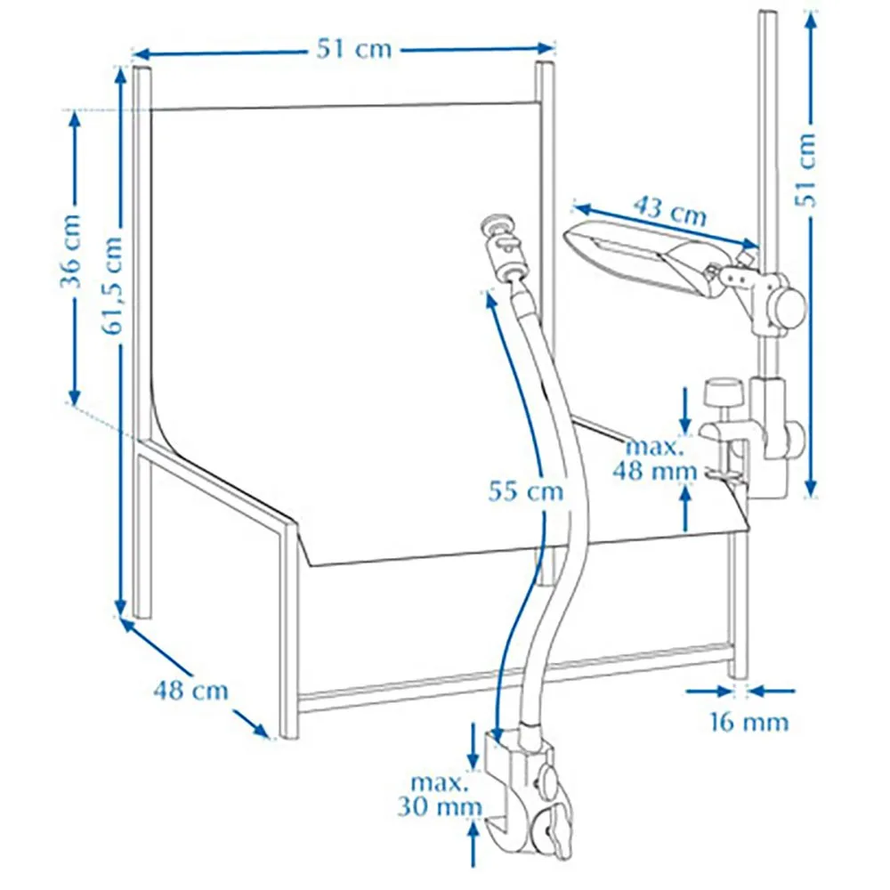 The KAISER SN-HF with Flexible Arm Studio Table in Black is the ultimate multi-functional workstation for photographers, videographers, students and professionals who require a sturdy, flexible and fully adjustable table for their various needs. With a wide range of features including a flexible arm, photo-video tripod head, study and lighting, this table is perfect for anyone who demands versatility and convenience in a compact and stylish design. Its sleek black finish is both stylish and professional, making it a perfect addition to any studio or workspace. Whether you're a budding photographer or an experienced pro, the KAISER SN-HF with Flexible Arm Studio Table is the ideal solution for your next project. So why wait? Get yours today and take your creativity to the next level!