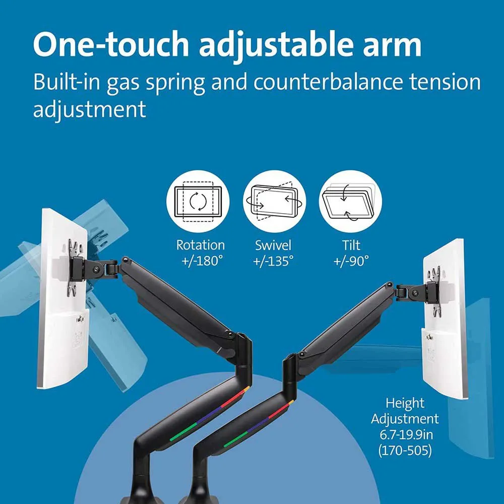 * One-Touch Adjustable Arm: Features a gas spring for smooth, counterbalance height and depth adjustments.