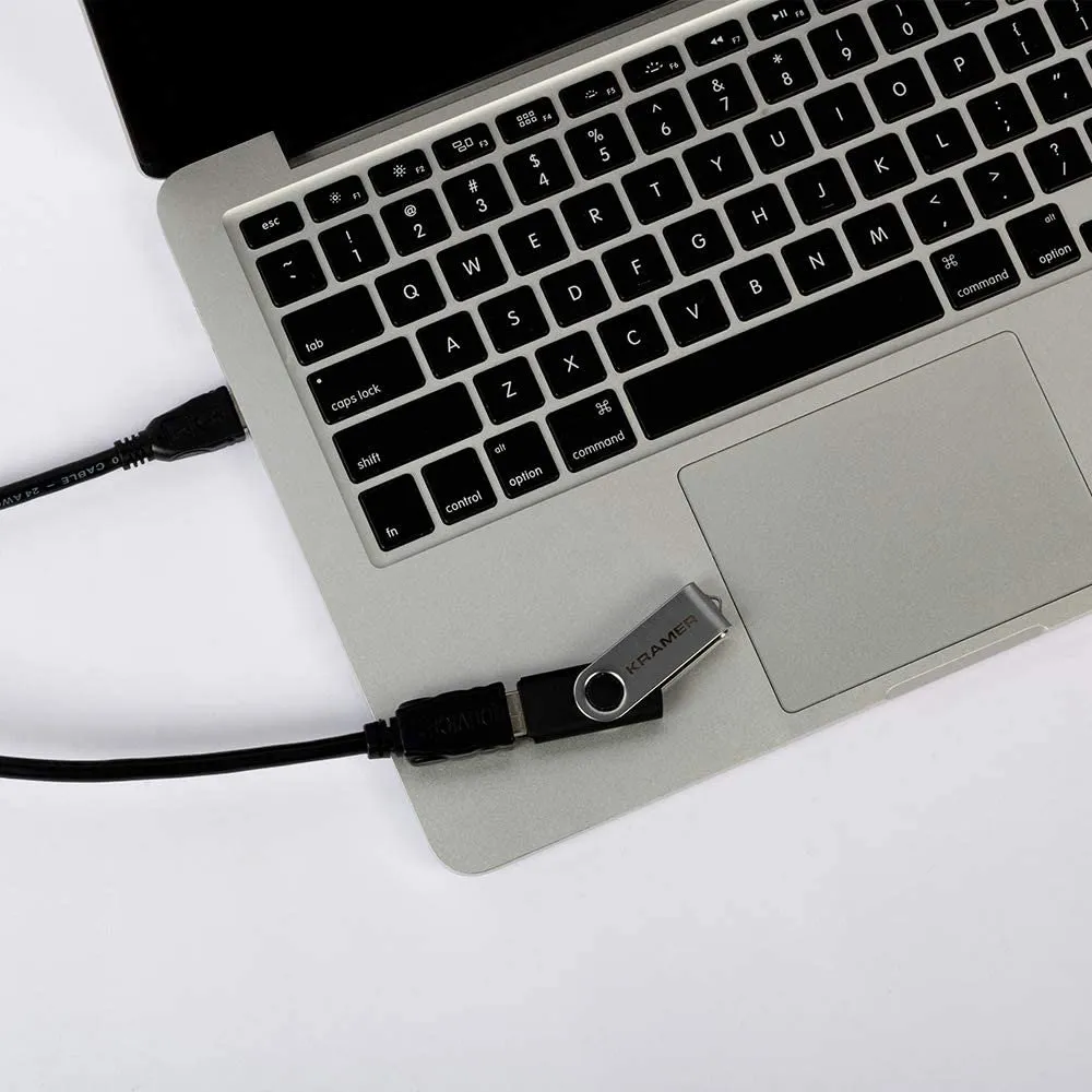 Due to its design USB cable has a normal maximum length of about 5 meters (16.4 feet) but you can get longer distances by using the CA&minusUAM/UAF active USB extension cable from Kramer!.