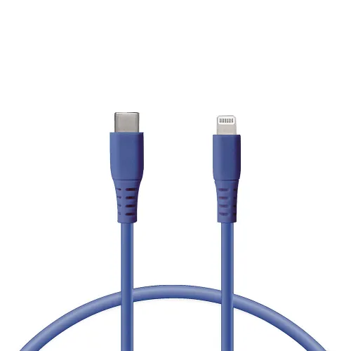 This blue Lightning to USB-C cable supports a maximum power of 65 W, making it compatible with ultra-fast charging.
