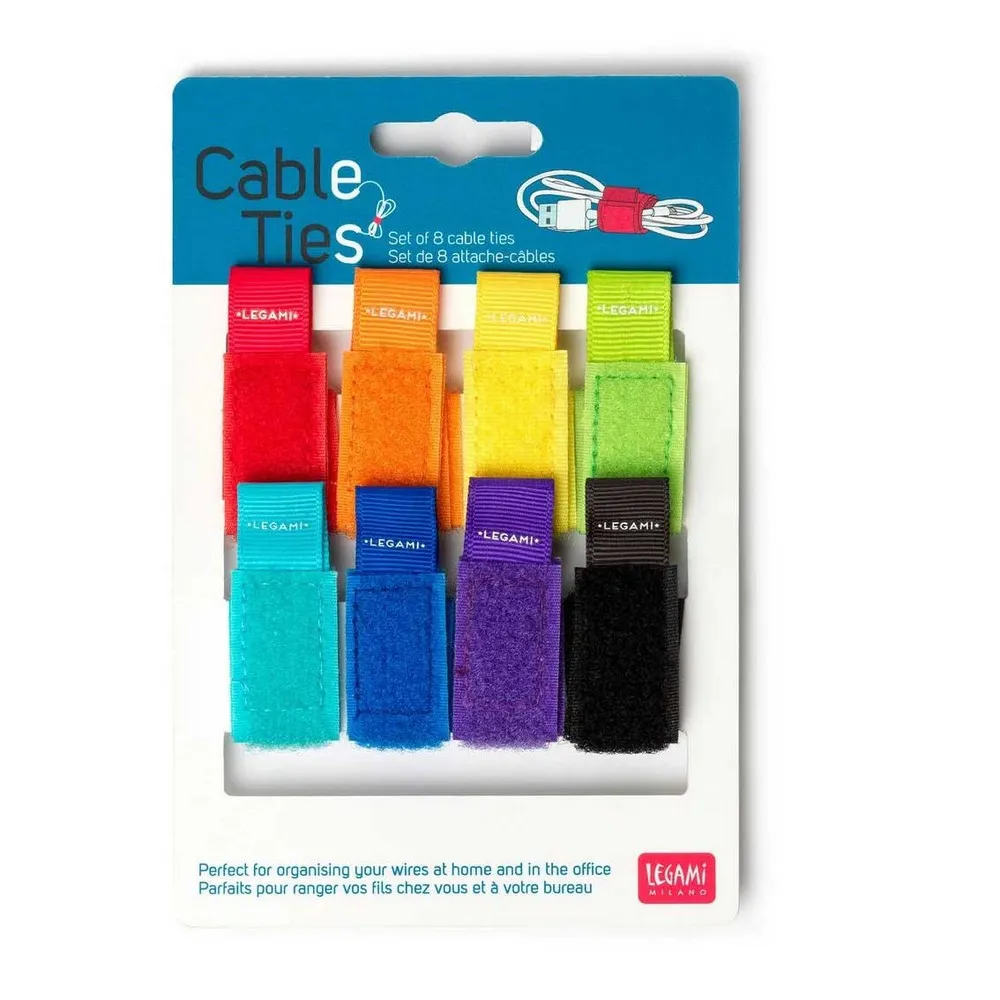 Made of hook and loop closure in a range of colours, the Legami Set of 8 Cable Ties keep your computer and device cables organised. Easily detachable and reusable, this is a practical solution to ensuring tidy tech.