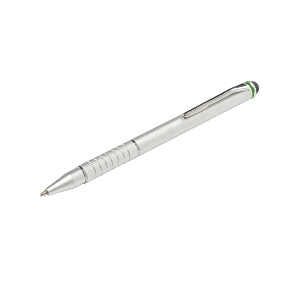 A touchscreen stylus that doubles as a lightweight aluminium ballpoint pen.