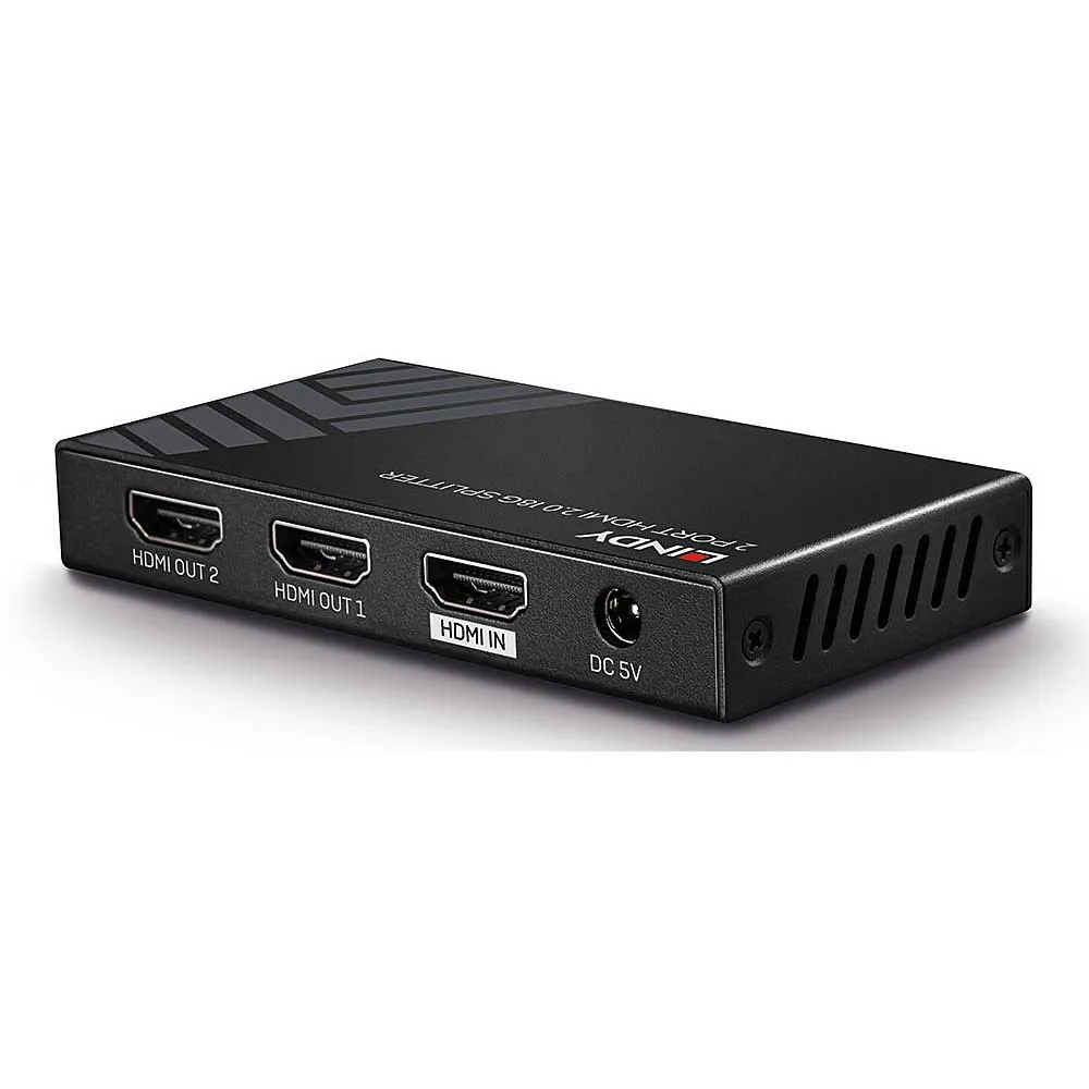 The Lindy 2 Port HDMI 18G Splitter is a compact, high quality solution for distributing HDMI 2.0 18G signals across dual displays from one source device.