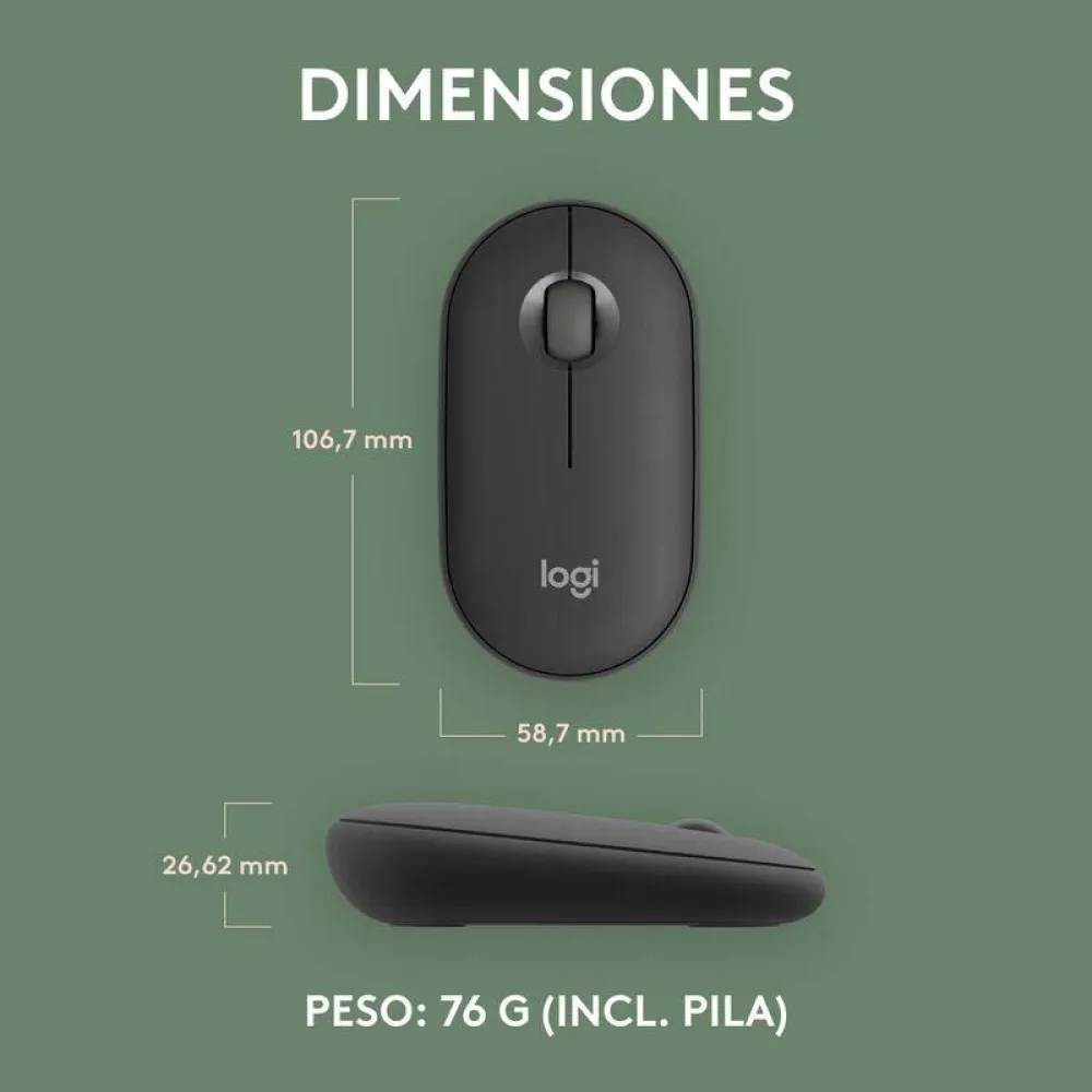 Versatility is at the core of the Pebble Mouse 2 M350s. Connect seamlessly to your devices using either Bluetooth® Low Energy technology or the Logi Bolt USB receiver (sold separately). With the Easy-Switch button located on the base of the mouse, you can effortlessly pair and switch between up to three different devices—be it your laptop, tablet, or desktop—with a single press. Take your productivity to the next level by personalizing the middle mouse button with the Logi Options+ App. Assign your favorite shortcuts, such as taking a screenshot, opening the emoji menu, or launching a specific application, to streamline your workflow.