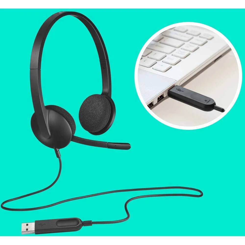Experience crystal-clear digital audio for all your calls, meetings, and webinars with the Logitech H340 headset. Its simple USB Plug & Play connection gets you started instantly on almost any platform. The noise-canceling microphone reduces background chatter for superior voice clarity and conveniently rotates out of the way when not in use. Enjoy rich stereo sound and all-day comfort thanks to its lightweight frame and adjustable headband, making it the perfect versatile headset for everyday use