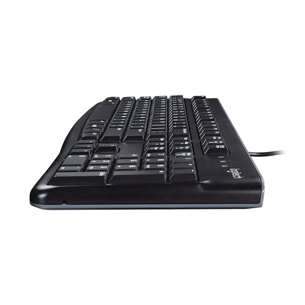 Upgrade your typing with the Logitech K120 Spanish keyboard. Enjoy a comfortable and quiet experience thanks to its low-profile keys and a standard layout with a full-size number pad. This sleek keyboard is built to last, featuring a spill-resistant design, durable keys rated for 10 million strokes, and sturdy, adjustable tilt legs for perfect ergonomic positioning. Setup is effortless—simply plug it into a USB port and start working instantly. With easy-to-read keys and Logitech´s renowned reliability, the K120 is the smart, durable choice for everyday use