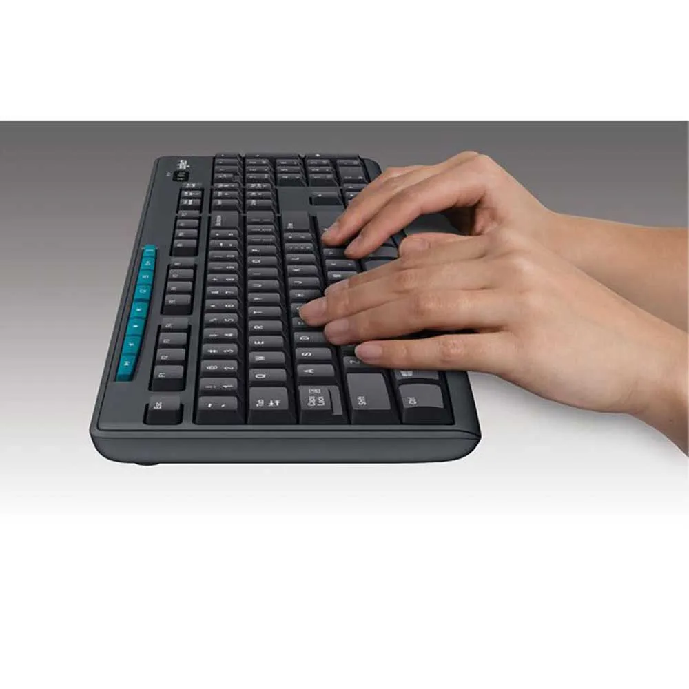 Cut the cord and clutter with the Logitech K270 Wireless Keyboard. Enjoy a robust 2.4 GHz connection from up to 10 meters away, powered by a tiny Unifying receiver that stays in your laptop and can pair with other compatible devices. Forget battery hassles with an incredible 24-month battery life. Eight dedicated hot keys put instant control of your media, email, and the web at your fingertips. The comfortable, full-size layout is also spill-resistant and features durable, fade-proof keys for long-lasting performance. Simply plug in the receiver and start typing—no software required