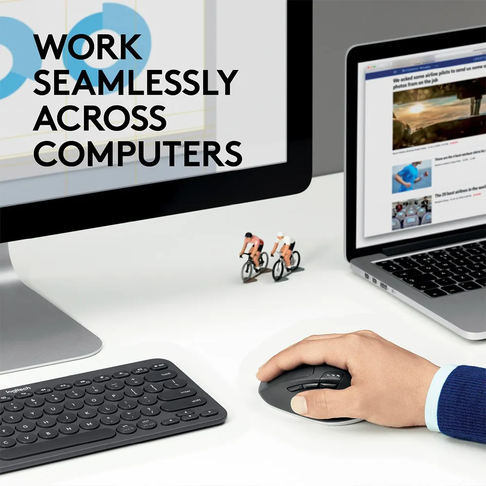 Succeed in a multi-device world with M720 Triathlon Mouse. You´ll power through tasks by switching seamlessly between 3 computers, and fly through documents and web pages with hyper-fast scrolling. Boosted efficiency means this Bluetooth® and Unifying mouse lasts for 24 months on a single AA battery. All that in a full-size shape fitting comfortably under your hand.
