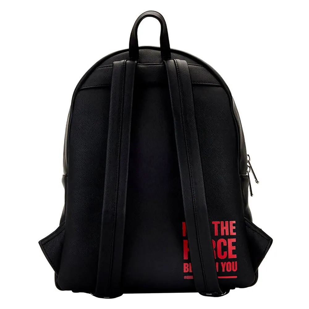 Celebrate cinematic legends with the LOUNGEFLY Trilogy Backpack. This 34 cm masterpiece blends high fashion with pop culture, creating a wearable piece of art for fans of epic sagas. Crafted from premium vegan leather, it boasts stunning printed details on the outside and a unique coordinating lining on the inside. Though compact, its design is surprisingly spacious for your daily essentials. Function meets style with adjustable straps for all-day comfort, convenient side pockets, and sturdy metal hardware. It’s the perfect accessory for conventions, city adventures, or simply showing off your fandom with unparalleled style