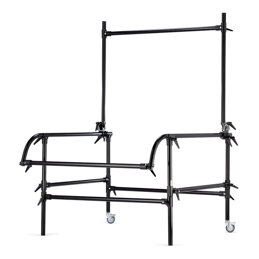 Still Life Table black with a 200cm x 122cm panel. Distance from floor to flat surface: 83cm. Height with back on vertical position: 193cm. Adj