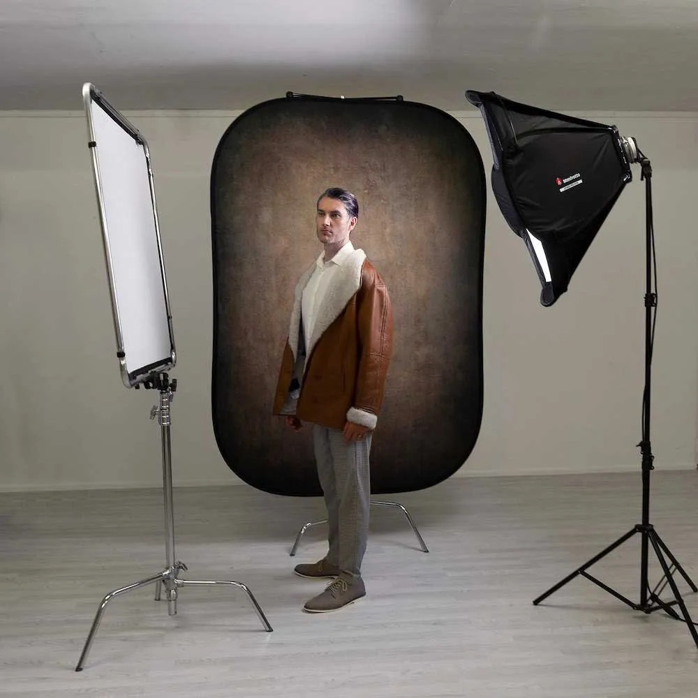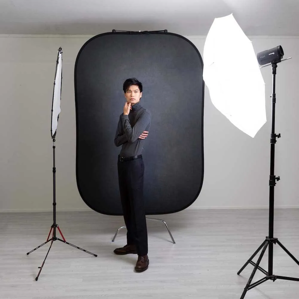 Ideal for shooting video interviews, portraits, fashion and products. This versatile reversible photo background provides a fashionable on trend look that adds a powerful and dramatic style to the chosen subject. This 2in1 background features a reversible design which can be used in both portrait or landscape orientation, as well as a collapsible pop up construction which allow it to fold down to a third of its original size, providing today’s creative image maker with a truly portable solution.